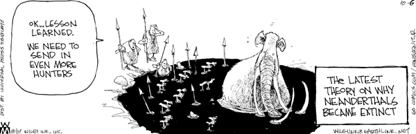 This is close to the perfect cartoon. It would have been timely during the American Revolutionary War, at times in England, at times in America. It would have been timely during periods of the Texas fight for independence. It would have been timely in the early part of the War Between the States, for the Union into 1862, for the Confederacy later. It’s perfect for the Phillipines uprising during the Teddy Roosevelt and Woodrow Wilson administrations. It fits Korea. It fits Vietnam. Some argue it fits Iraq.