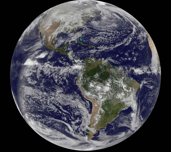 From NASA: The GOES-13 satellite captured a "full-disk image" of North and South America in an image created December 30 at 1445 UTC (9:45 a.m. EST), as the world awaits the new year. Credit: NOAA/NASA GOES Project; click on picture for larger view