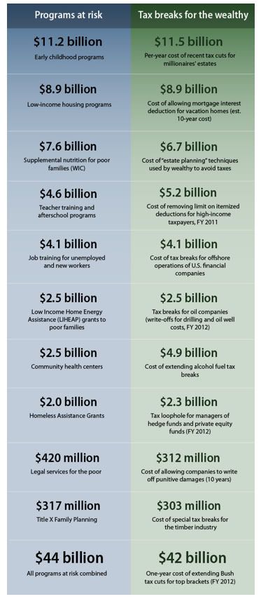 The left column is things the Republicans want to cut. The right column is things they want to keep.