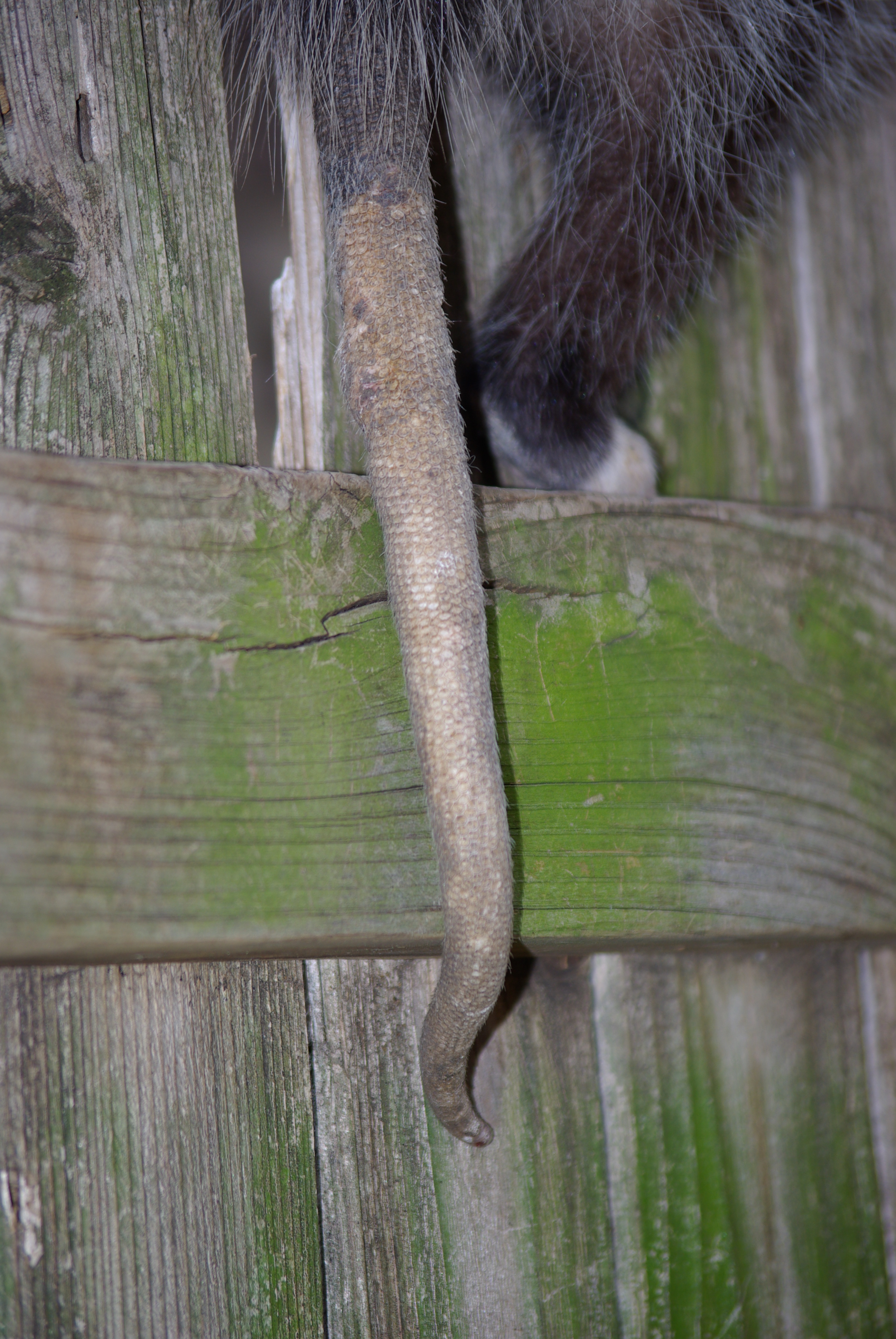 S/he may have been trying to reach the safety of the area under the heat pump -- but the dogs caught on, and "treed" it on the fence. I worried about rabies, but it seemed healthy.