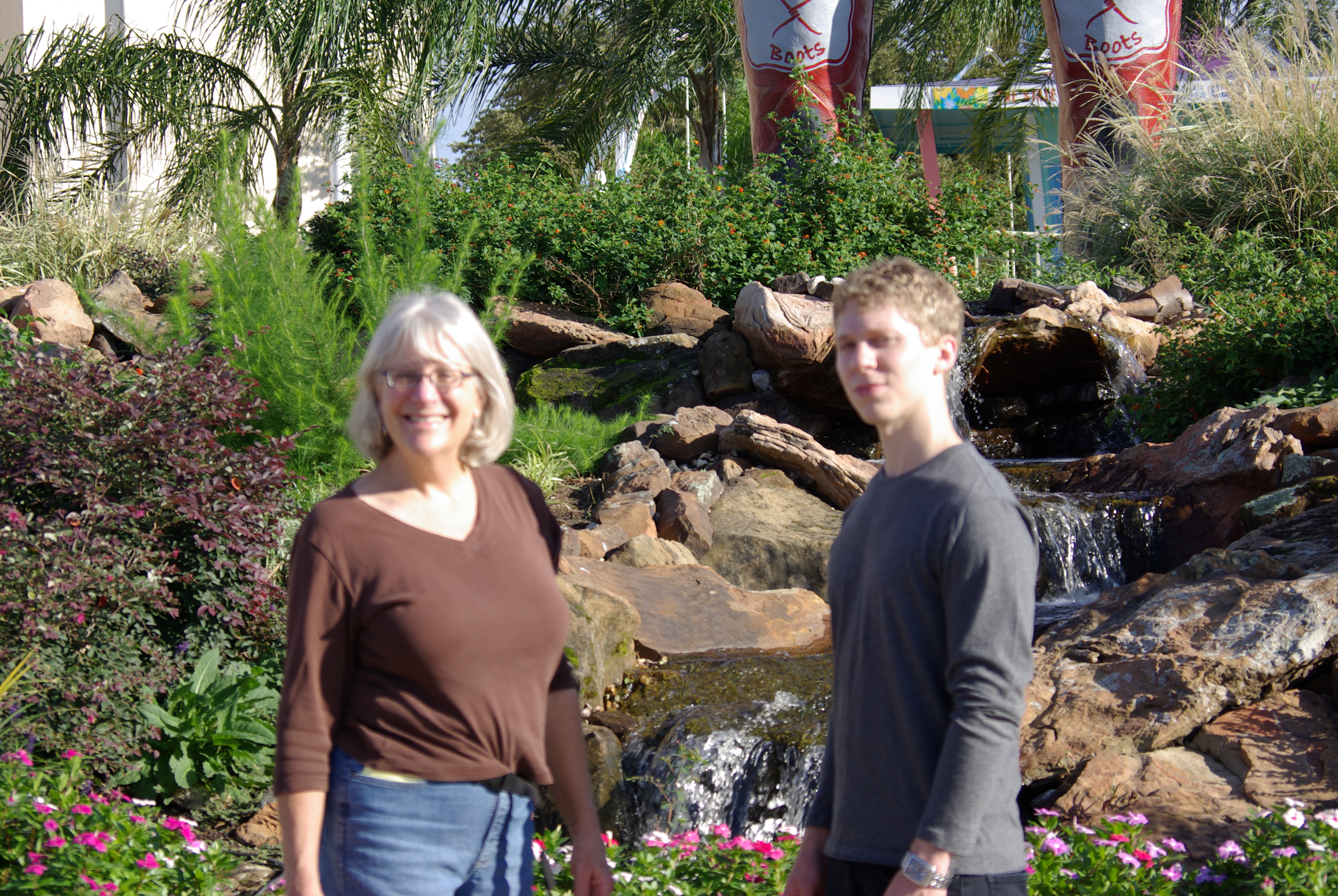 It was more of an unposed photo, as Kathryn and James read about the landscaping and the use of large, unsculpted Oklahoma stone in the garden at his feet.