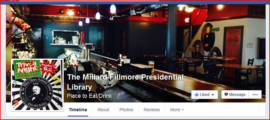 Photo of the interior of the Millard Fillmore Presidential Library, in Cleveland, Ohio. From Facebook page. Motto something like, “This ain’t the LBJ Library.”