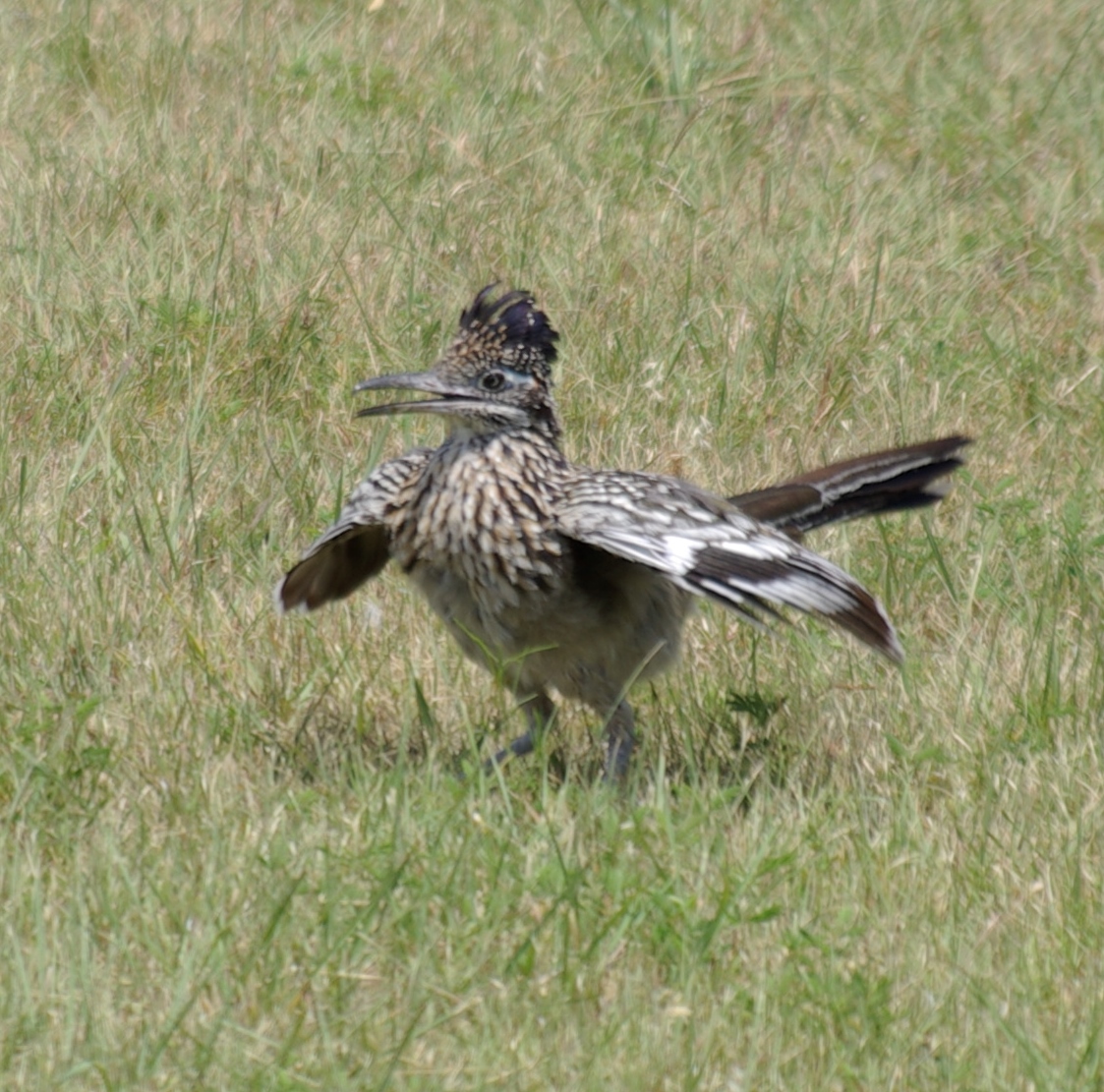Roadrunners, the greater roadrunner, Geococcyx californianus (which means “Californian Earth-cuckoo,” a description of many politicians in the Golden State, perhaps).