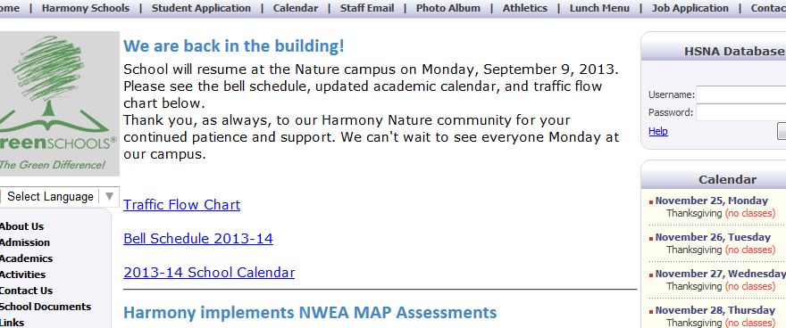 Screen capture of announcement that school will be held in the school building starting September 9, 2013.