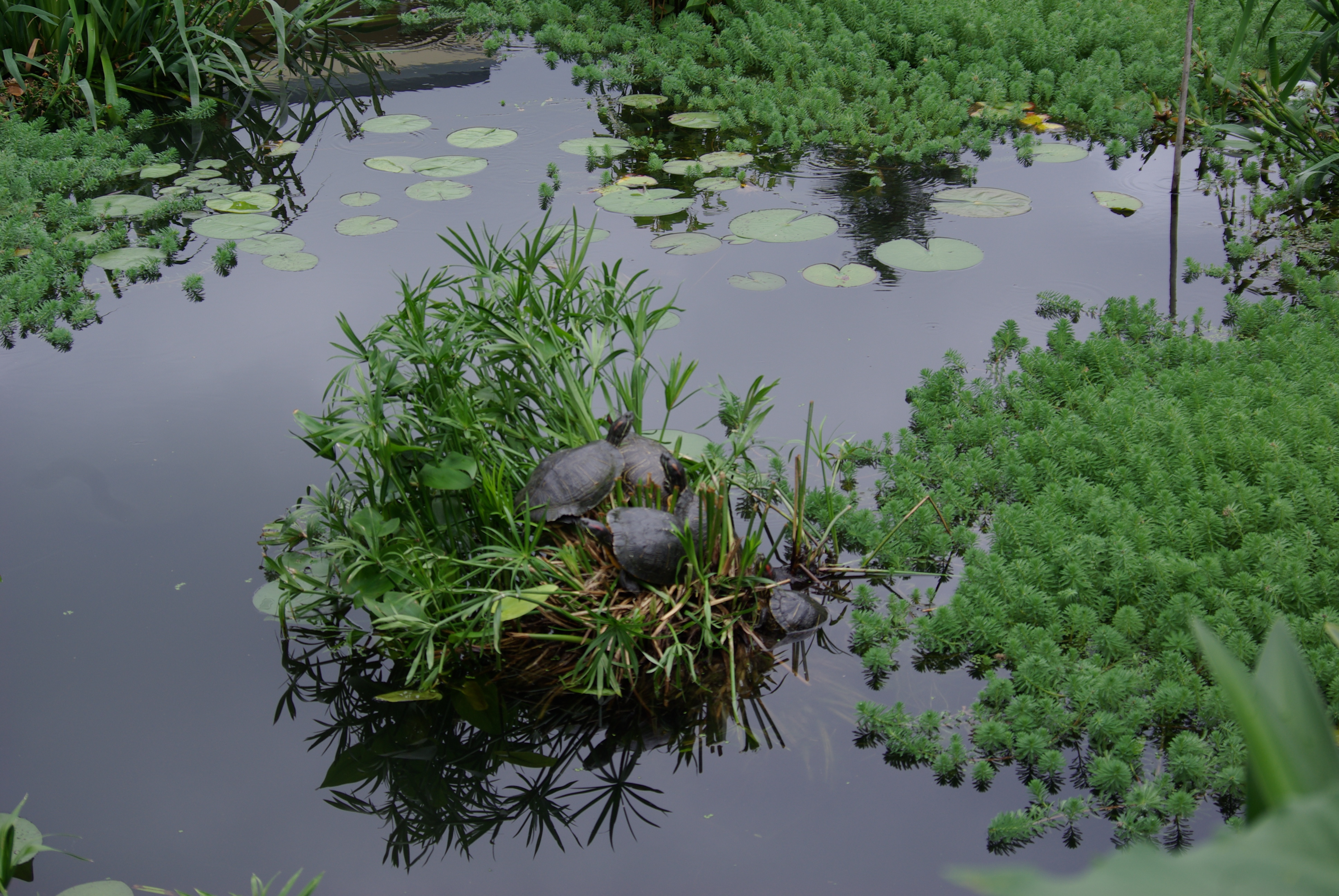 Red-eared sliders cluster together to catch the sun on a spring day at Texas Discovery Gardens at Fair Park in Dallas. Photo by Ed Darrell, 2010